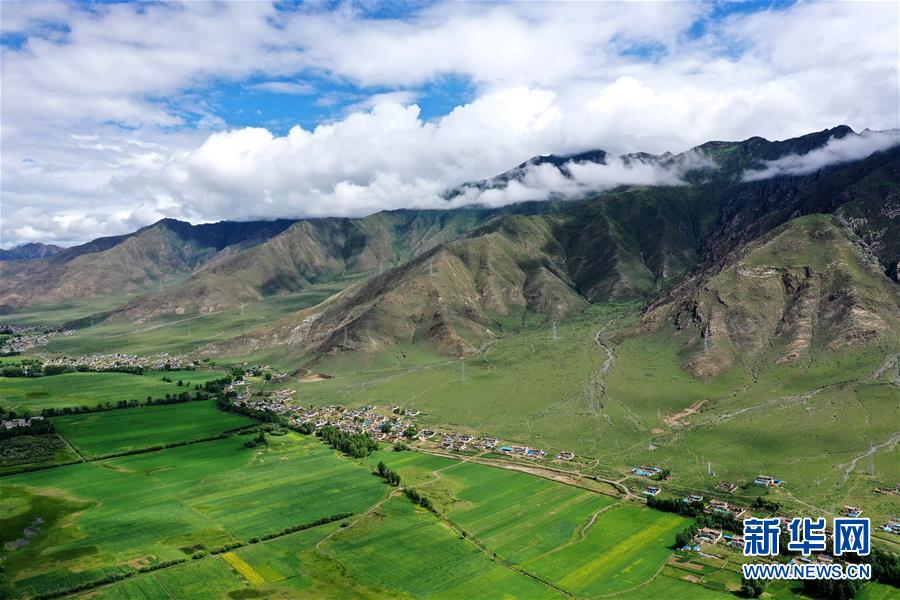 拉薩市林周縣邊交林鄉(xiāng)田園景色(7月14日攝,無(wú)人機(jī)照片)。林周縣地處西藏中部,拉薩河上游。夏日時(shí)節(jié),這里水草豐茂,綠意盎然,河流、村落、農(nóng)田組成一幅美麗的田園畫(huà)卷。新華社記者 詹彥 攝