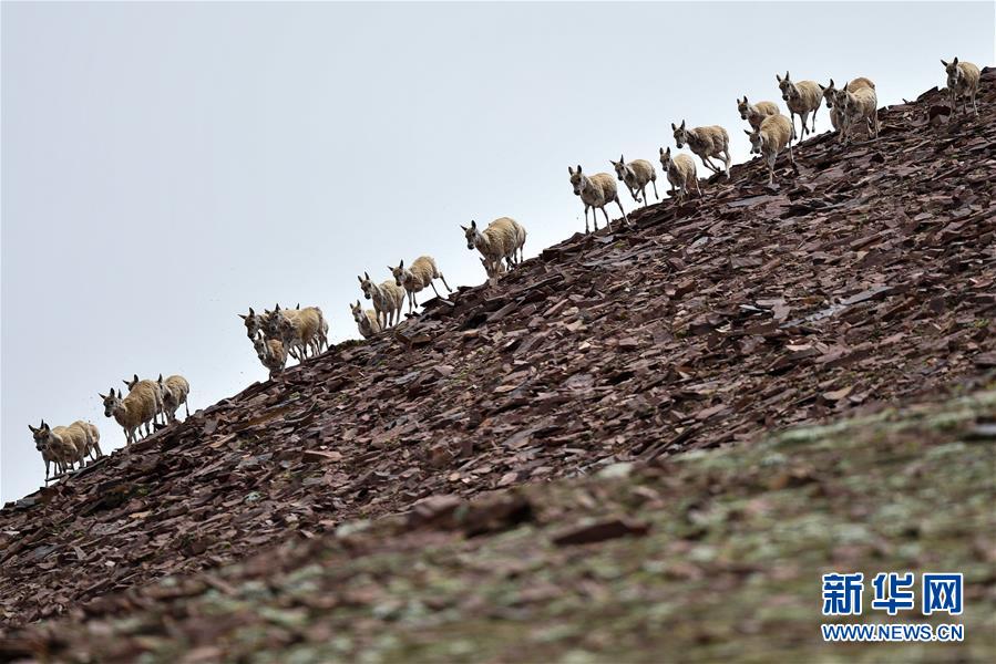 7月7日在可可西里卓乃湖區(qū)域拍攝的一群藏羚羊。目前正值藏羚羊產(chǎn)仔季。來(lái)自青海三江源、新疆阿爾金山、西藏羌塘等地的藏羚羊來(lái)到位于青海省可可西里腹地、被譽(yù)為“藏羚羊大產(chǎn)房”的卓乃湖區(qū)域產(chǎn)仔。新華社記者 張龍 攝