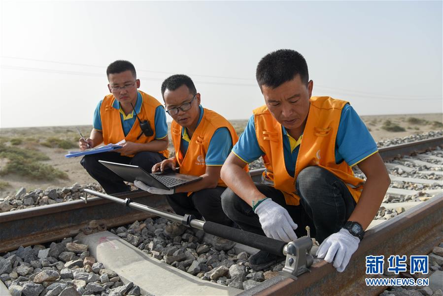 鋼軌打磨機(jī)組的技術(shù)員進(jìn)行鋼軌巡檢(7月14日攝)。新華社記者 丁磊 攝