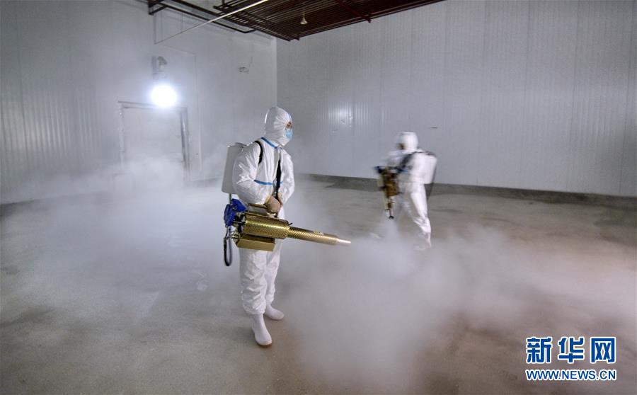 7月14日,北京二商肉類(lèi)食品集團(tuán)有限公司員工對(duì)肉類(lèi)冷藏庫(kù)房進(jìn)行全方位消毒。北京二商肉類(lèi)食品集團(tuán)有限公司是保障北京肉類(lèi)市場(chǎng)供應(yīng)的主要企業(yè)之一。新冠肺炎疫情以來(lái),企業(yè)嚴(yán)格實(shí)施北京市、農(nóng)業(yè)農(nóng)村部和中國(guó)肉類(lèi)協(xié)會(huì)的防疫要求,對(duì)進(jìn)入廠(chǎng)區(qū)的人員、車(chē)輛以及原料采購(gòu)、屠宰分割、產(chǎn)品加工、貯藏運(yùn)輸、廢棄物收集及污水處理等生產(chǎn)環(huán)節(jié)嚴(yán)格防疫,強(qiáng)調(diào)源頭把關(guān)徹底消毒。目前,集團(tuán)公司下屬多家生豬屠宰加工基地正常運(yùn)營(yíng),保質(zhì)保量供應(yīng)北京市場(chǎng)需求。新華社記者 李欣 攝