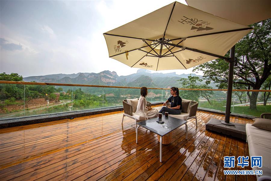 7月15日,游客在武安市活水鄉(xiāng)王坡民宿聊天。近年來,河北省武安市活水鄉(xiāng)依托當(dāng)?shù)刈匀簧鷳B(tài)優(yōu)勢(shì),大力發(fā)展鄉(xiāng)村旅游,利用空閑民居打造特色鄉(xiāng)村精品民宿,為農(nóng)村發(fā)展注入新活力,助力鄉(xiāng)村振興。新華社記者 王曉 攝
