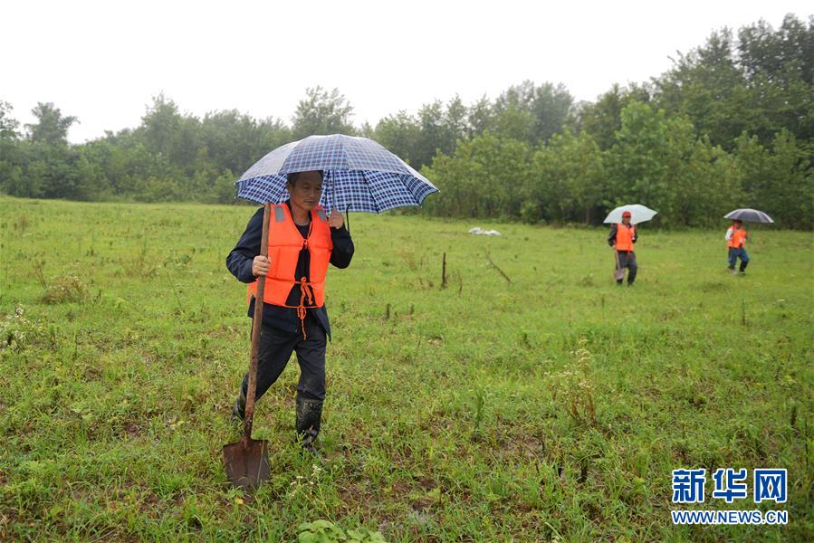 7月16日,鐵銅鄉(xiāng)新豐村的抗洪搶險隊(duì)員鮑大友(左)和隊(duì)友在圩堤上巡堤查險。受長江持續(xù)高水位影響,安徽省樅陽縣的鐵銅鄉(xiāng)江心洲已于近日將江心洲上的居民轉(zhuǎn)移安置,而包括搶險隊(duì)員、鄉(xiāng)鎮(zhèn)干部、水利工程師等在內(nèi)的近300人“留守”在江心洲上巡堤查險,守護(hù)家園。鐵銅鄉(xiāng)位于長江江心洲上,有4個行政村52個村民組,耕地面積12000多畝。新華社記者黃博涵攝