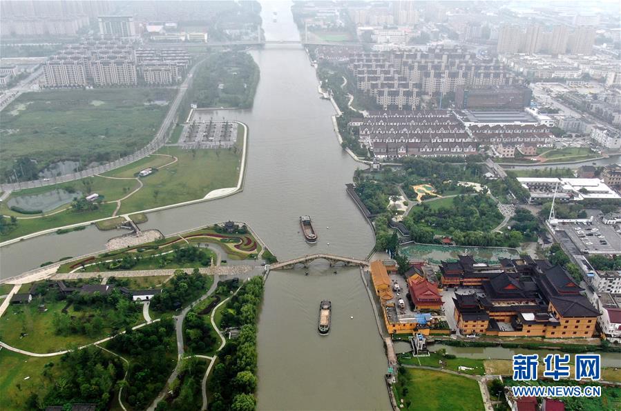 7月17日拍攝的秀洲區(qū)王江涇鎮(zhèn)長虹橋附近的河道(無人機(jī)照片)。浙江省嘉興市秀洲區(qū)處在杭嘉湖平原,受持續(xù)強(qiáng)降雨及上游排水影響,近期,秀洲區(qū)境內(nèi)的京杭大運(yùn)河分支航道持續(xù)保持較高水位。當(dāng)?shù)叵嚓P(guān)部門嚴(yán)陣以待,落實各項措施,確保安全度汛。新華社記者韓傳號攝