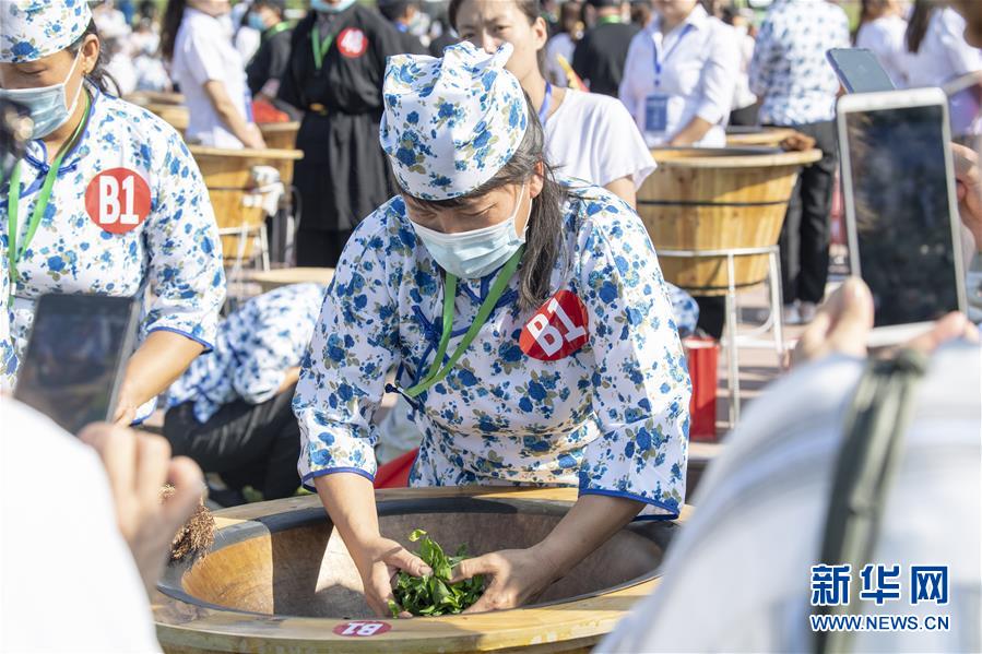 7月20日,參賽選手在位于安澤縣飛嶺村的斗茶文化主題活動(dòng)現(xiàn)場(chǎng)制茶。新華社記者楊晨光攝
