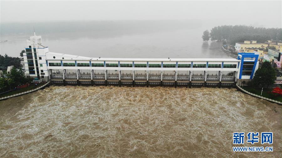 7月20日,洪水通過王家壩閘涌入蒙洼蓄洪區(qū)。當日8時32分,淮河干流王家壩閘開閘泄洪。受近期強降雨影響,淮河干流王家壩站水位19日快速上漲,7月20日6時36分水位漲至29.66米,超過保證水位0.36米?;春油跫覊伍l開閘泄洪,蒙洼蓄洪區(qū)啟用。新華社記者黃博涵攝
