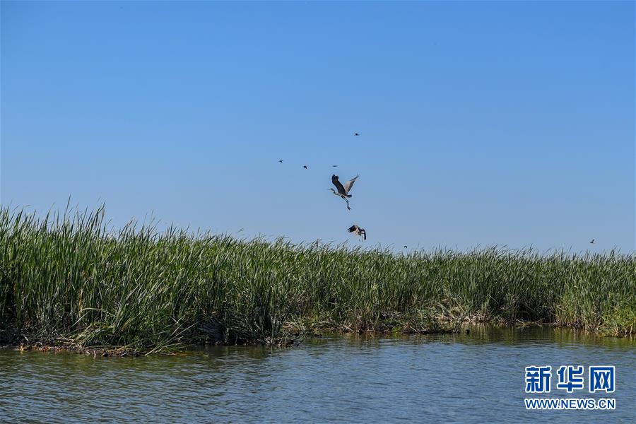 鳥類在查干湖濕地棲息(7月20日攝)。新華社記者張楠攝