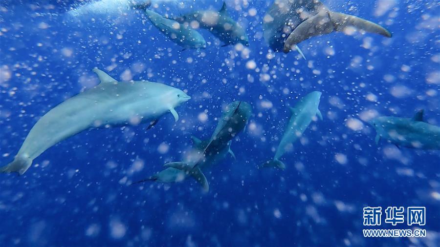 這是7月20日在南海某海域拍攝的弗氏海豚。新華社記者張麗蕓攝