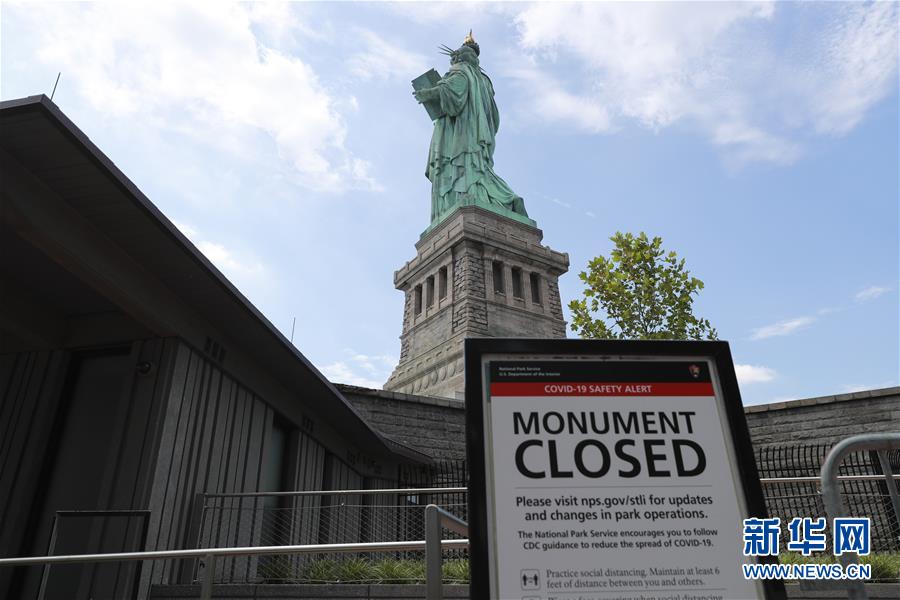 7月20日,美國紐約自由島上一處提示牌顯示自由女神像內(nèi)部的參觀仍處于暫停狀態(tài)。美國紐約市20日繼續(xù)推進經(jīng)濟重啟計劃,宣布開始進入解封新階段,進一步允許部分低風險文娛活動重啟。自由女神像所在的自由島對公眾開放,但雕像內(nèi)部和博物館仍關閉。新華社記者王迎攝