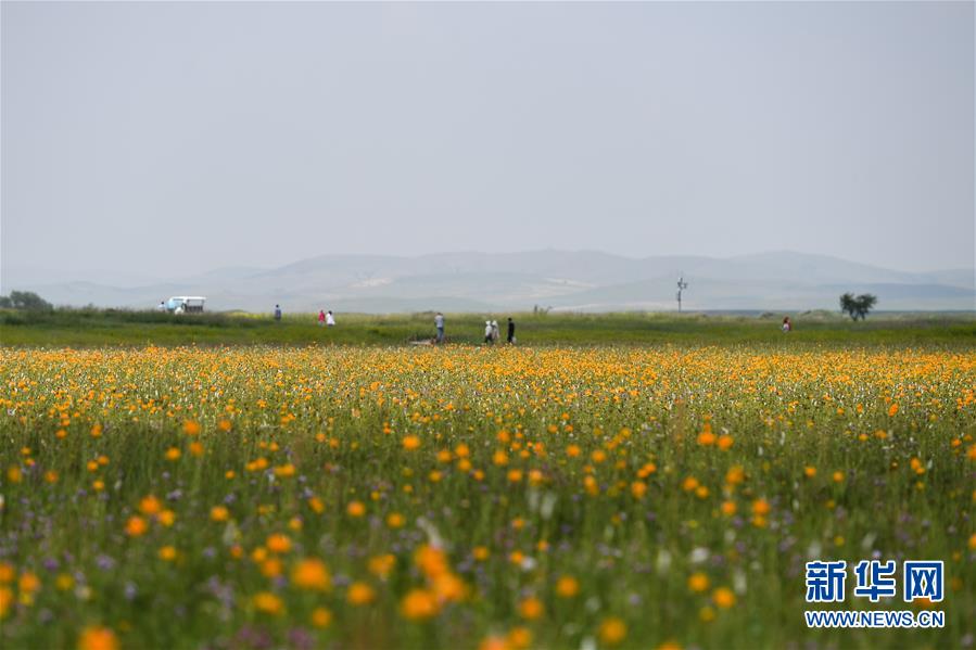 7月22日,游客在金蓮川草原上游玩。金蓮川草原位于內(nèi)蒙古自治區(qū)錫林郭勒盟正藍旗,正值盛夏,金蓮川草原上鮮花綻放,景色宜人。新華社記者徐欽攝