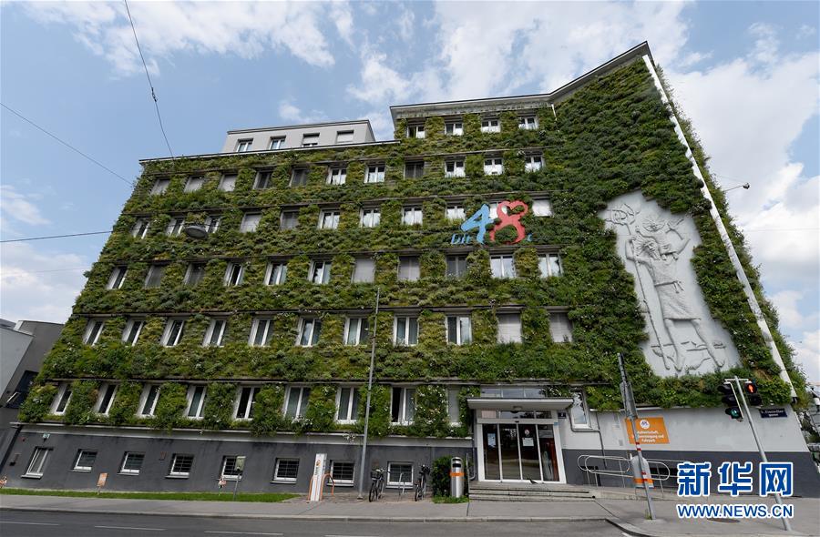 這是7月22日拍攝的奧地利維也納市政管理局廢物處理辦公總部(MA48)外景。奧地利首都維也納的市政管理局廢物處理辦公總部的外墻被種植的綠色植物覆蓋,成為了維也納市建設綠色城市、節(jié)能減排的“示例樓”。據介紹,這個外墻項目建立于2010年,每年在夏季為該建筑自然降溫、增加濕度,從而減少空調的使用,并可吸收二氧化碳。維也納市政府提倡市內建筑建設綠色外墻,并提供資金支持。新華社記者郭晨攝