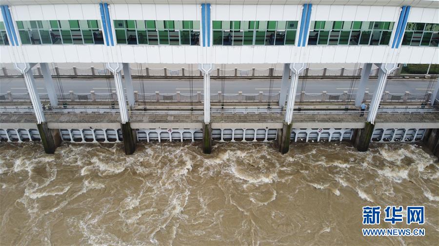這是7月23日在安徽省阜南縣拍攝的正在關(guān)閘的淮河王家壩閘(無人機(jī)照片)。當(dāng)日13時,淮河干流王家壩閘關(guān)閘,停止向蒙洼蓄洪區(qū)泄洪。新華社記者張端攝
