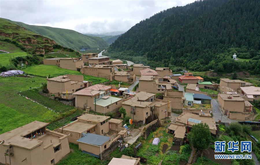 7月5日拍攝的阿壩縣查理鄉(xiāng)神座村(無人機照片)。新華社記者陳天湖攝