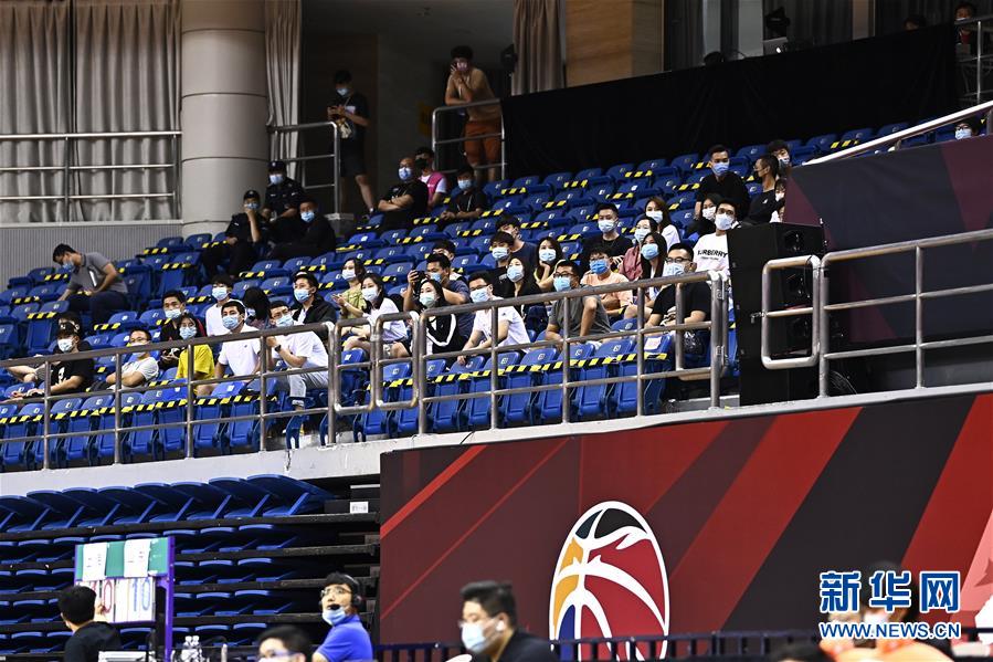 7月26日,觀眾觀看上海久事隊與山東西王隊的比賽。該場比賽首次恢復(fù)觀眾現(xiàn)場觀看比賽。當(dāng)日,在山東青島舉行的2019-2020賽季中國男子籃球職業(yè)聯(lián)賽(CBA)復(fù)賽第二階段(嶗山賽區(qū))比賽中,醫(yī)護人員、教師、公安戰(zhàn)線人士通過官方購票平臺,完成包括核酸檢測在內(nèi)的相關(guān)流程后進場觀看了上海久事隊迎戰(zhàn)山東西王隊的比賽。觀賽期間,觀賽者須全程佩戴口罩,對號入座,嚴格保持間隔一米就座。退場時,觀眾須按照自后向前、先兩邊后中間的順序,保持“一米線”社交距離有序退場。新華社記者 郭緒雷 攝