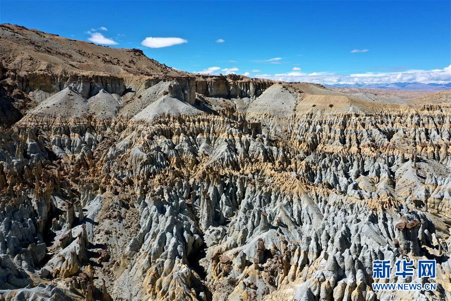 這是7月26日在西藏阿里地區(qū)札達(dá)縣托林鎮(zhèn)拍攝的札達(dá)土林(無(wú)人機(jī)照片)。札達(dá)土林位于西藏阿里地區(qū)札達(dá)縣境內(nèi),千姿百態(tài)的土林與藍(lán)天、白云相互映襯,景色壯美。新華社記者 詹彥 攝