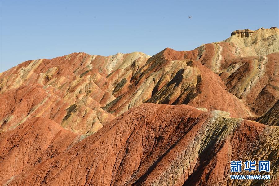 盛夏時(shí)節(jié),地處甘肅省張掖市的張掖世界地質(zhì)公園迎來(lái)最美季節(jié)。張掖世界地質(zhì)公園最顯著的特征是有由色彩斑斕的褶皺泥巖和砂巖組成的彩色丘陵,同時(shí)還擁有自然侵蝕在山體上形成的“窗欞狀”“宮殿式”丹霞地貌和古代洋殼殘余九個(gè)泉蛇綠巖套。