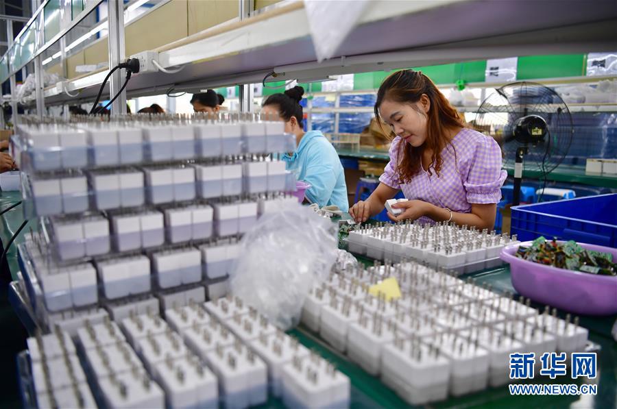 7月25日,在陜西漢陰縣澗池鎮(zhèn)紫云南郡易地扶貧搬遷安置社區(qū)的社區(qū)工廠內(nèi),社區(qū)居民在加工插頭。陜南地區(qū)地處秦巴山區(qū),是陜西脫貧攻堅的主戰(zhàn)場。近年來,陜南各縣區(qū)因地制宜、精準(zhǔn)施策,通過發(fā)展社區(qū)工廠、特色種植、旅游扶貧、技能培訓(xùn)、電商帶貨等措施,促進(jìn)多種產(chǎn)業(yè)發(fā)展,助力農(nóng)民增收。新華社記者邵瑞攝