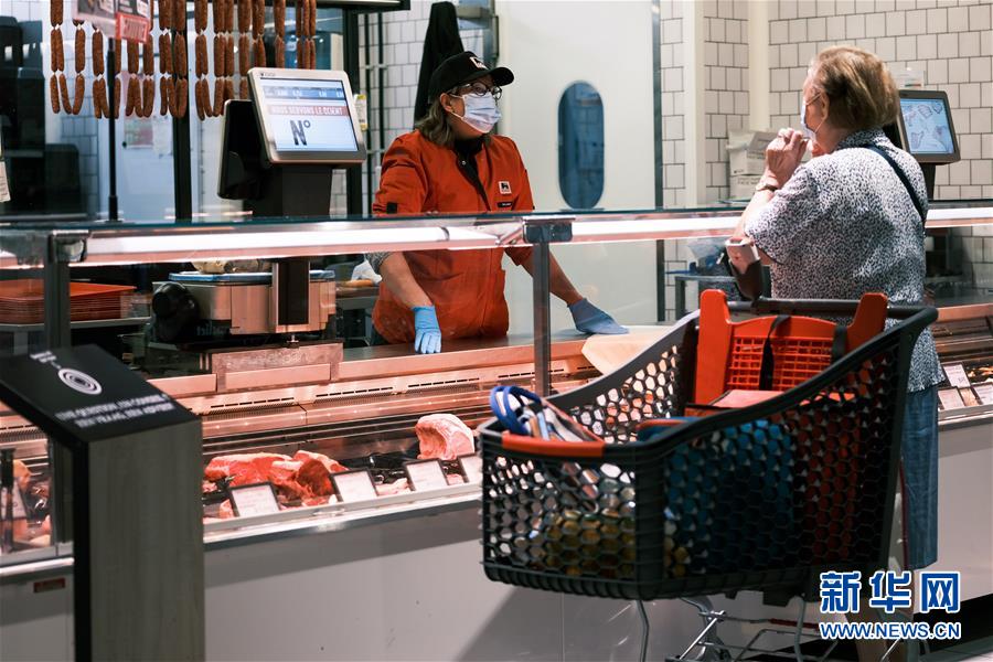 7月29日,一名戴口罩的顧客在比利時布魯塞爾一家超市采購。新華社記者張鋮攝