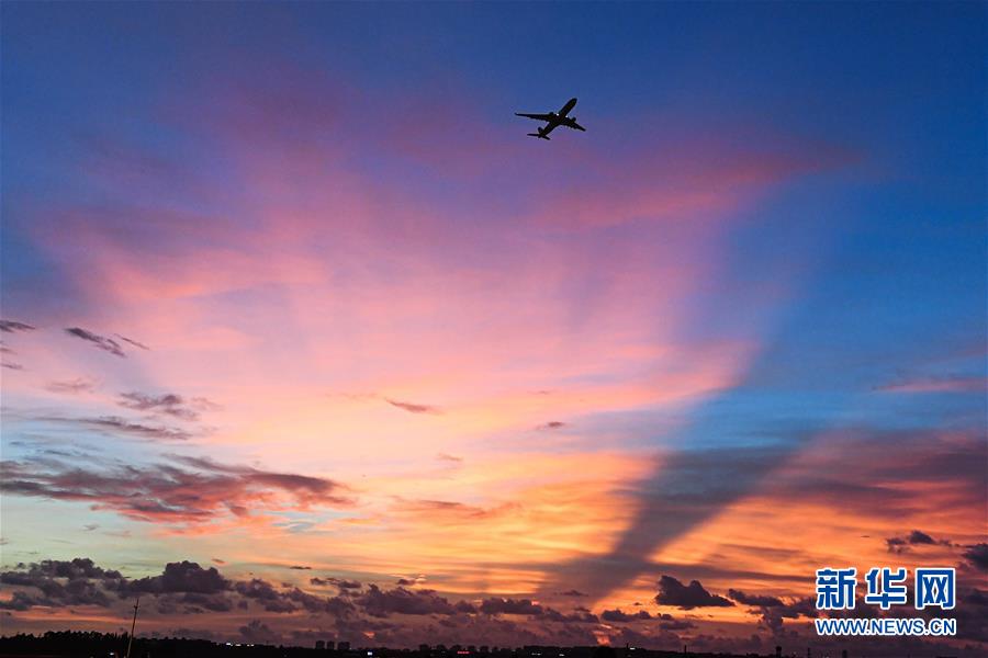 這是7月30日在海口美蘭國際機(jī)場二期擴(kuò)建項目拍攝的試飛現(xiàn)場。