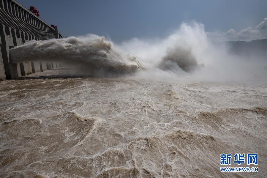 三峽樞紐工程開啟泄洪深孔泄洪(7月31日攝)。新華社記者杜華舉攝