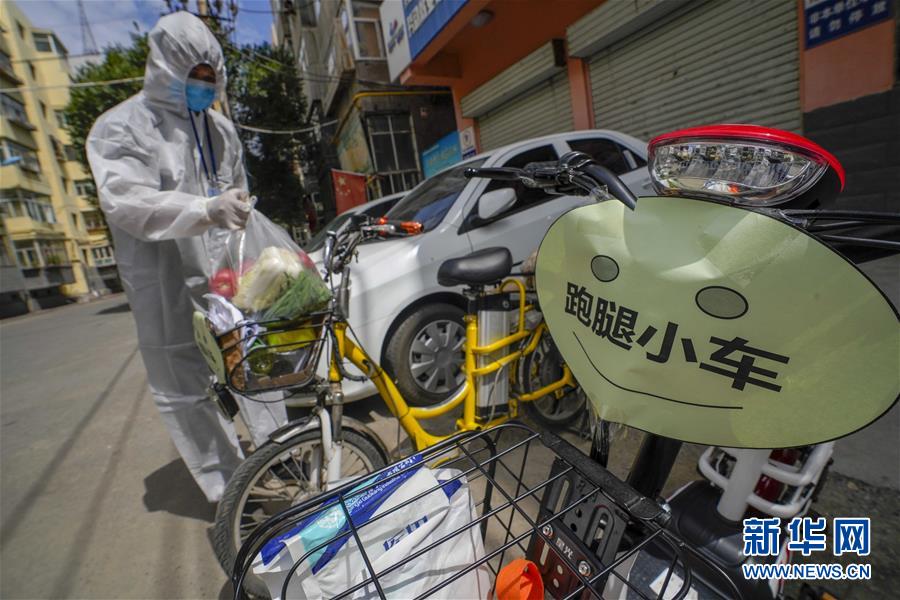 8月3日,在烏魯木齊天山區(qū)西河壩前街社區(qū),社區(qū)工作人員準備騎上”跑腿小車“為居民送去生活物品。新疆烏魯木齊市天山區(qū)西河壩前街社區(qū)主次干道較多,院落分布分散。新冠肺炎疫情防控期間,社區(qū)整合現(xiàn)有資源,將暫時閑置的自行車、電動車集中起來,貼上“跑腿小車”標識,成立便民服務隊,社區(qū)工作人員通過“跑腿小車”可將居民網絡定制的“菜袋子”“藥盒子”快速送達,給居民帶來方便。新華社記者趙戈攝