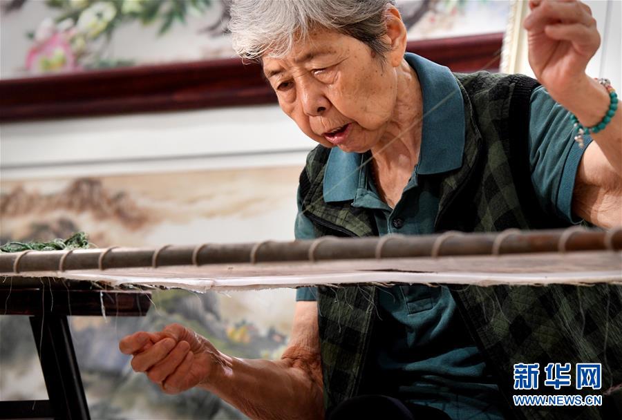 “一針一線繡人生,一心一意做好人?!痹诤幽祥_封市素花宋繡工藝有限公司的展示館里,85歲的王素花一邊劈線一邊講述自己的故事。