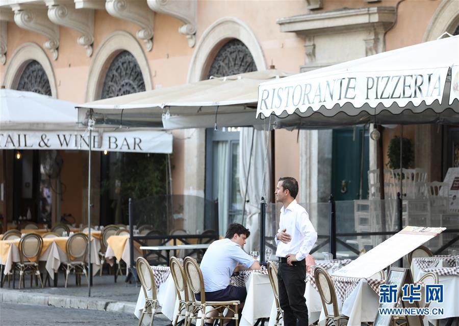 8月4日,在意大利首都羅馬,一家餐廳的工作人員站在門口招攬顧客。受新冠疫情影響,今年夏天羅馬的歷史中心區(qū)游客比往年明顯減少。新華社記者程婷婷攝