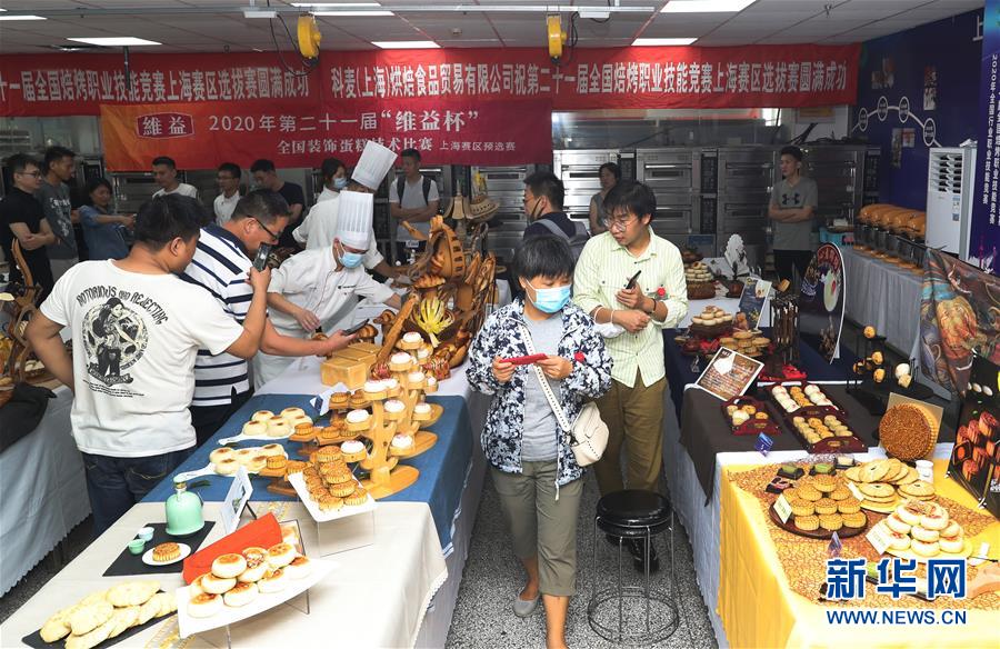 8月5日,觀眾在展示區(qū)觀看參賽選手的作品。當(dāng)日,第二十一屆全國焙烤職業(yè)技能競(jìng)賽上海賽區(qū)選拔賽,在上海市現(xiàn)代食品職業(yè)技能培訓(xùn)中心舉行,來自上海、江蘇、浙江等地的近60名焙烤行業(yè)技師,在藝術(shù)面包、傳統(tǒng)糕點(diǎn)、糖藝和藝術(shù)巧克力等項(xiàng)目中進(jìn)行比拼,在充滿焙烤香氣的賽場(chǎng)上展現(xiàn)技藝。新華社記者方喆攝