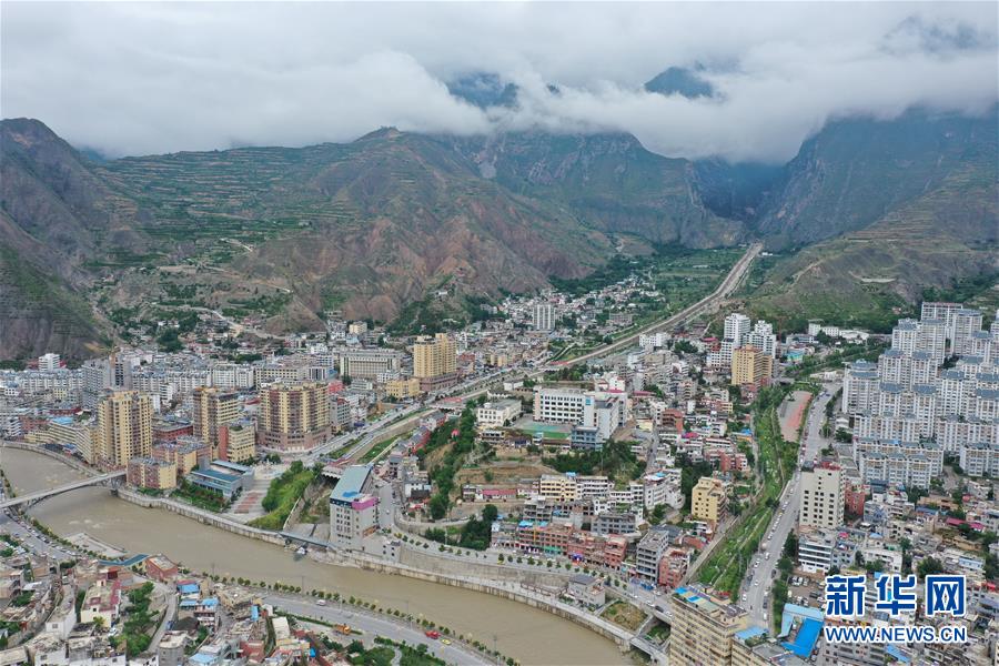 這是7月14日拍攝的舟曲縣老縣城(無人機(jī)照片)。新華社記者杜哲宇攝