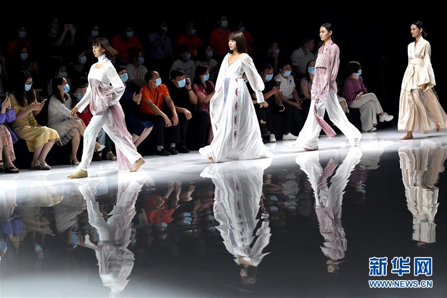 8月6日,模特在時(shí)裝秀上展示時(shí)裝。當(dāng)日,2020中國(河南)國際大學(xué)生時(shí)裝周舉行河南大學(xué)生優(yōu)秀服裝設(shè)計(jì)專場展示。8月5日至7日,2020中國(河南)國際大學(xué)生時(shí)裝周在河南省新密市豫發(fā)密蘭小鎮(zhèn)舉行。新華社記者朱祥攝