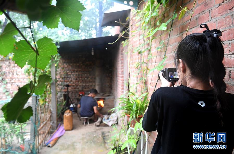 8月5日,王曉楠(右)在家中拍攝短視頻。新華社記者郝源攝