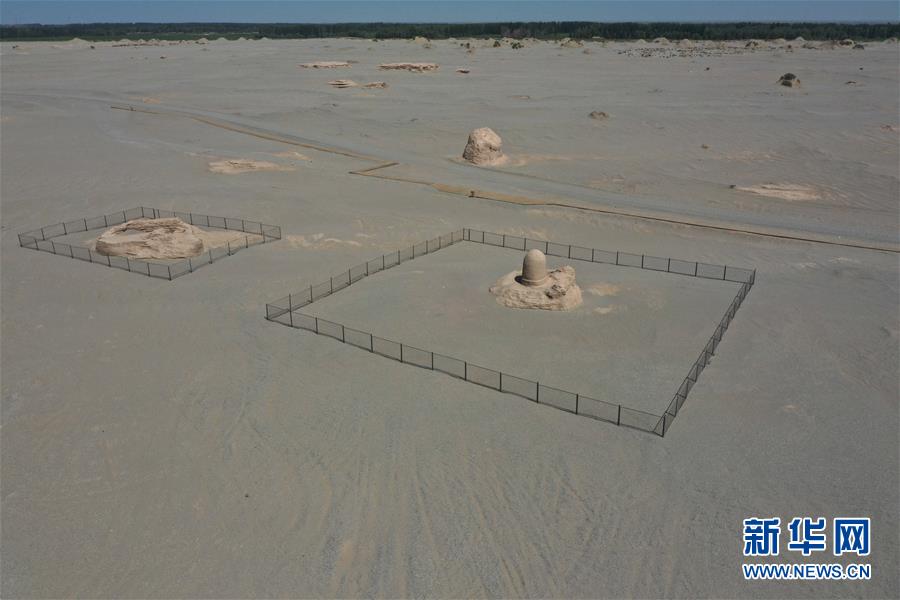 這是米蘭遺址內(nèi)的佛寺遺址(7月24日攝,無人機照片)。新華社記者宿傳義攝