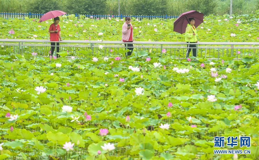 8月6日,游客在河北省永清縣里瀾城鎮(zhèn)金華湖觀(guān)賞荷花。夏日時(shí)節(jié),河北省永清縣里瀾城鎮(zhèn)金華湖荷塘的荷花爭(zhēng)相開(kāi)放,吸引市民和游客前來(lái)游玩觀(guān)賞。新華社記者李曉果攝