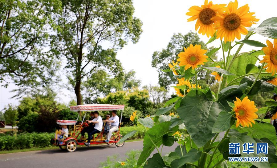 游客在上海市金山區(qū)的花開(kāi)海上生態(tài)園游玩(6月26日攝)。新華社記者方喆攝