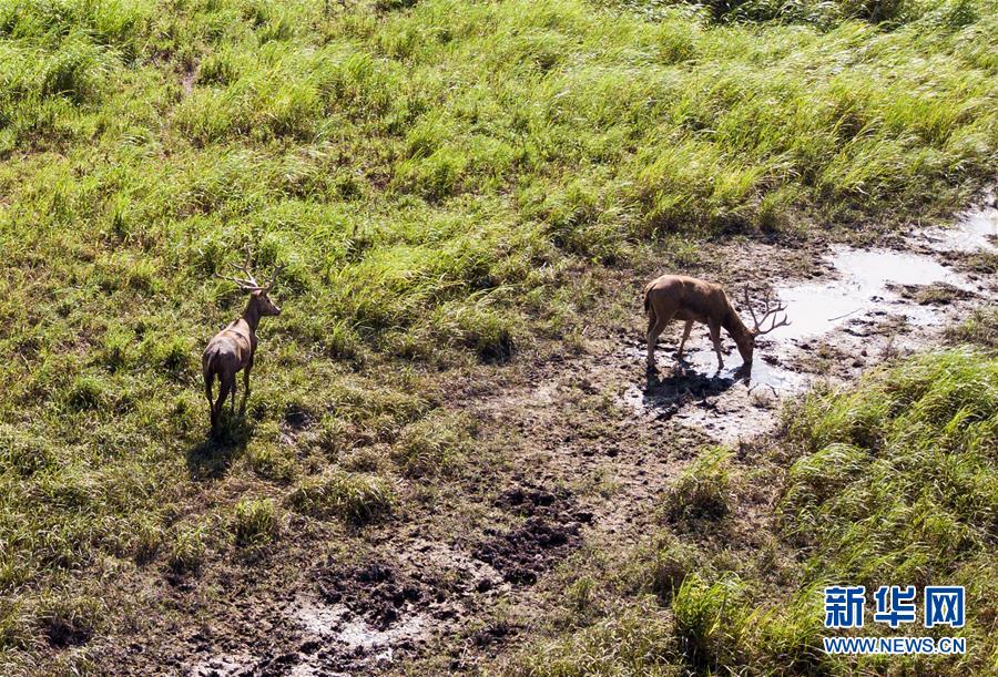 這是8月7日在東洞庭湖麋鹿和鳥(niǎo)類救治避難中心拍攝的麋鹿(無(wú)人機(jī)照片)。位于湖南省岳陽(yáng)市的東洞庭湖麋鹿和鳥(niǎo)類救治避難中心成立于2016年9月,占地400余畝,中心自建成后就承擔(dān)起東洞庭湖區(qū)域全部麋鹿的救援、醫(yī)治、康復(fù)和喂養(yǎng)任務(wù)。目前該中心共有14只麋鹿正在接受救助。新華社記者李鑫攝