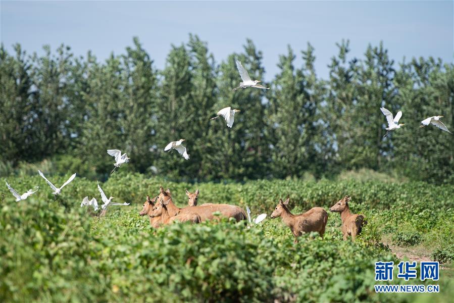 這是8月7日在東洞庭湖麋鹿和鳥(niǎo)類救治避難中心拍攝的麋鹿和飛鳥(niǎo)。位于湖南省岳陽(yáng)市的東洞庭湖麋鹿和鳥(niǎo)類救治避難中心成立于2016年9月,占地400余畝,中心自建成后就承擔(dān)起東洞庭湖區(qū)域全部麋鹿的救援、醫(yī)治、康復(fù)和喂養(yǎng)任務(wù)。目前該中心共有14只麋鹿正在接受救助。新華社記者陳思汗攝