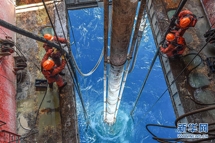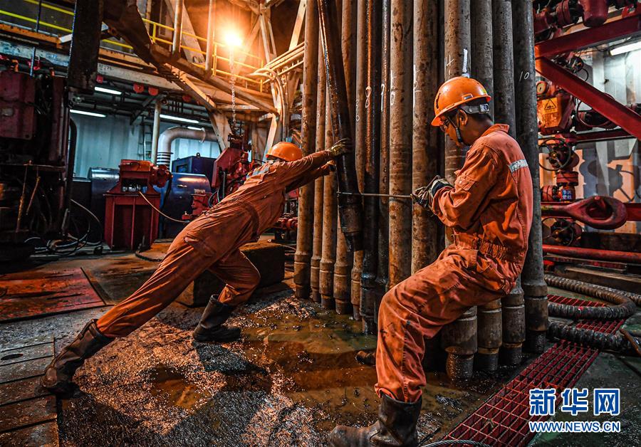 鉆井隊(duì)分兩班24小時(shí)不間斷運(yùn)轉(zhuǎn)。在一個(gè)班次中,9名鉆井工人協(xié)同操控鉆井設(shè)備,鉆探著海洋油氣資源。契入海底的“探針”??蛇_(dá)五、六千米。