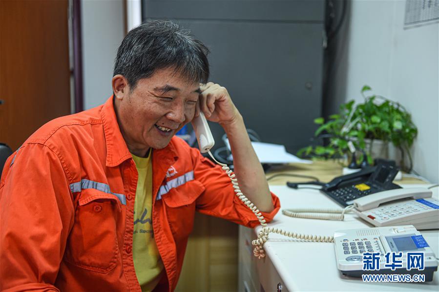7月27日,在位于南海北部海域的勘探三號(hào)鉆井平臺(tái)上,一名工人通過衛(wèi)星電話與家人聯(lián)絡(luò)。鉆井平臺(tái)上沒有手機(jī)信號(hào),這是鉆井工人與家人聯(lián)絡(luò)的重要渠道。新華社記者蒲曉旭攝