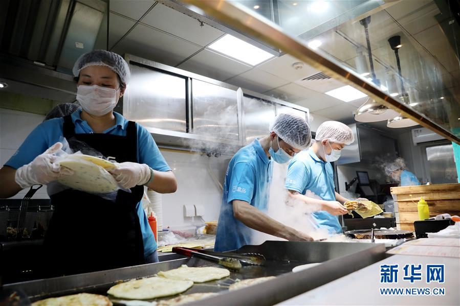在上海地鐵13號線世博會博物館地鐵站附近的一家盒小馬服務(wù)點,工作人員在制作煎餅果子等早餐餐品(7月17日攝)。近年來,在上海崛起了一批以盒馬、叮咚、拼多多為代表的在線經(jīng)濟新力量,在助力脫貧攻堅、提升城市居民品質(zhì)生活方面發(fā)揮著重要作用。電商加持下的“云農(nóng)業(yè)”加速發(fā)展,一端為市民提供更便宜新鮮的農(nóng)產(chǎn)品,另一端讓山區(qū)的優(yōu)質(zhì)產(chǎn)品加速進入城市餐桌,化解交通不便、農(nóng)產(chǎn)品滯銷等問題。新華社記者方喆攝。