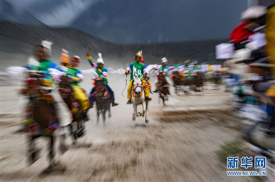 8月10日,騎手馳騁在當(dāng)雄縣賽馬場。新華社記者普布扎西攝。