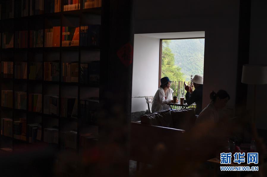 游客在浙江省麗水市松陽(yáng)縣四都鄉(xiāng)陳家鋪村的先鋒書店平民書局休閑(7月17日攝)。新華社記者黃宗治攝。