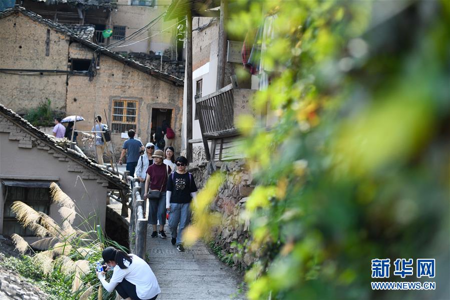游客在浙江省麗水市松陽(yáng)縣四都鄉(xiāng)陳家鋪村游覽(7月17日攝)。新華社記者黃宗治攝。