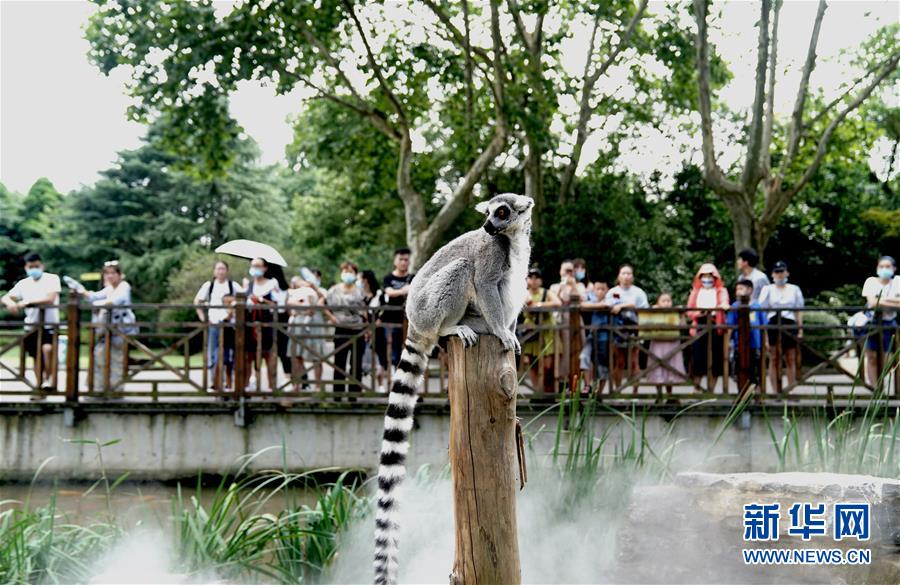 8月11日,上海動(dòng)物園的松鼠猴在“地噴”營(yíng)造的水霧中玩耍。當(dāng)日,上海最高溫度達(dá)到35攝氏度,上海動(dòng)物園開(kāi)啟園內(nèi)安裝的各種噴淋裝置,讓動(dòng)物們防暑降溫,樂(lè)享清涼。新華社記者張建松攝