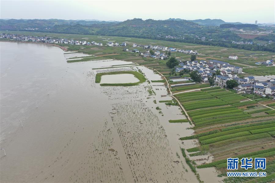 8月12日,重慶市潼南區(qū)桂林街道雙壩村蔬菜基地,部分低洼地帶的農(nóng)作物被洪水淹沒(無(wú)人機(jī)照片)。受強(qiáng)降雨影響,涪江潼南段迎來(lái)過境洪水。新華社記者 黃偉 攝