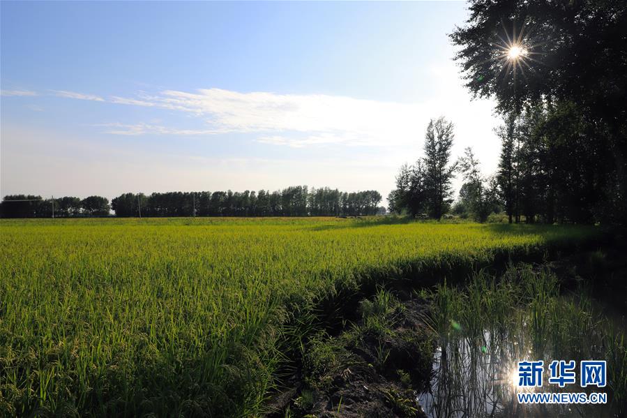 8月12日,春華村干部檢查水稻田中的蟹苗。新華社記者 雒圓 攝