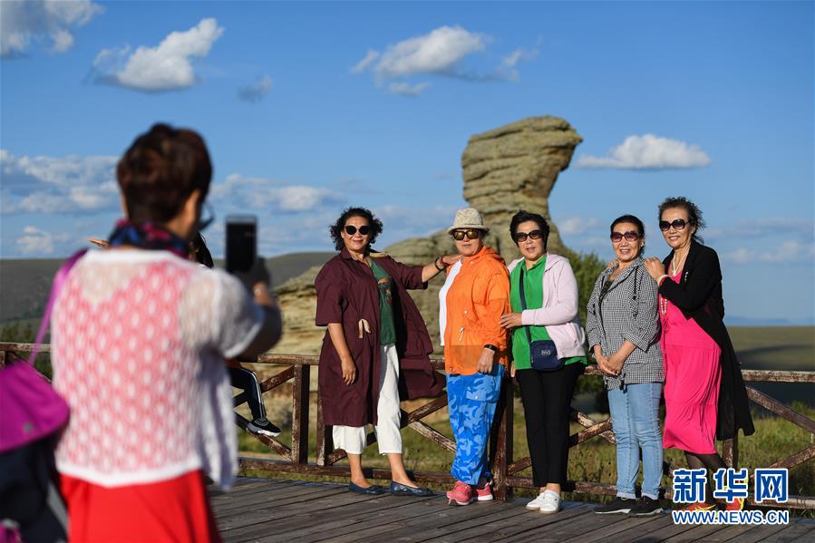 游客在克什克騰石陣景區(qū)拍照留影(8月11日攝)。克什克騰旗位于內(nèi)蒙古自治區(qū)赤峰市西北部,境內(nèi)的湖泊、河流、草原、森林等自然景觀(guān),讓人們流連忘返。新華社記者劉磊攝