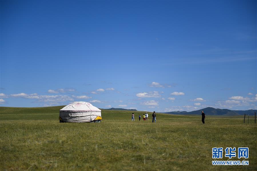 游客在克什克騰旗貢格爾草原上游玩(8月11日攝)。克什克騰旗位于內(nèi)蒙古自治區(qū)赤峰市西北部,境內(nèi)的湖泊、河流、草原、森林等自然景觀,讓人們流連忘返。新華社記者劉磊攝