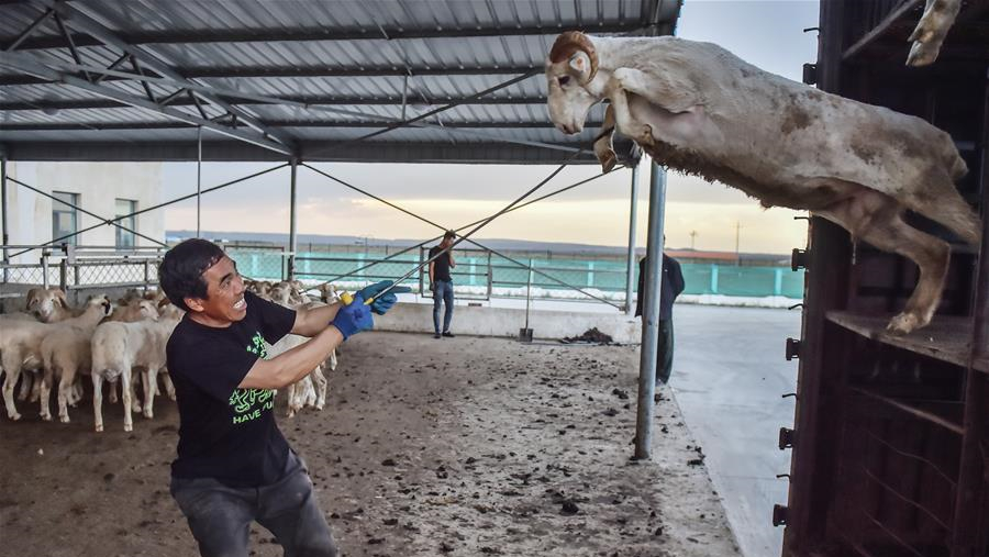 在新疆察布查爾錫伯自治縣一處生態(tài)扶貧林,當(dāng)?shù)刎毨?hù)將修剪完的樹(shù)枝拉回家喂牲畜(6月16日攝)。