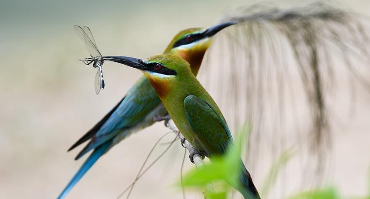近日,不少栗喉蜂虎來到海南省??谑兄卜敝常瑩?jù)??诋z榃濕地研究所工作人員統(tǒng)計(jì),目前來到海口的栗喉蜂虎已有近200只。