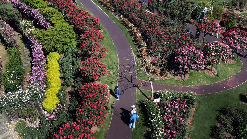 近日,上海迎來月季花期,上海辰山植物園的月季島上,各色月季競相綻放,形成絢爛花海。