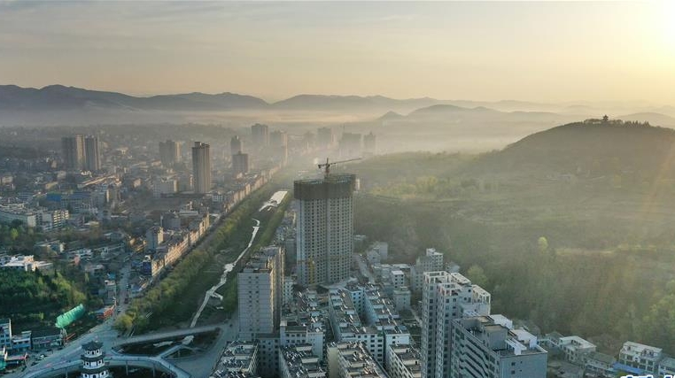 陜西省商洛市洛南縣位于秦嶺深處,在晨曦的沐浴下,縣城與周邊的山脈風光優(yōu)美。